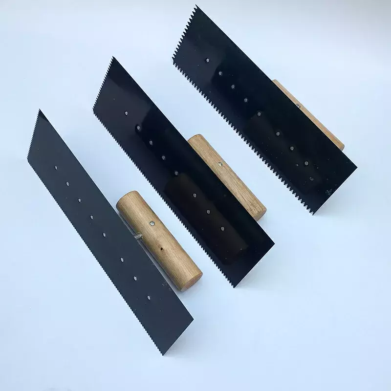 The blade is straight and flat, designed to evenly spread and level paint or materials across the floor surface. Suitable for applying general floor coatings and also used for finishing.
